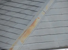 屋根材の劣化が進み、塗料が密着しなくなっている状態です。何度塗っても無駄になってしまうため、根本的な解決策が必要です。