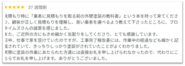 ここからは信頼できる口コミの特徴をより具体的に伝えるため、プロタイムズ岐阜南店に寄せられた口コミを例に解説していきます。