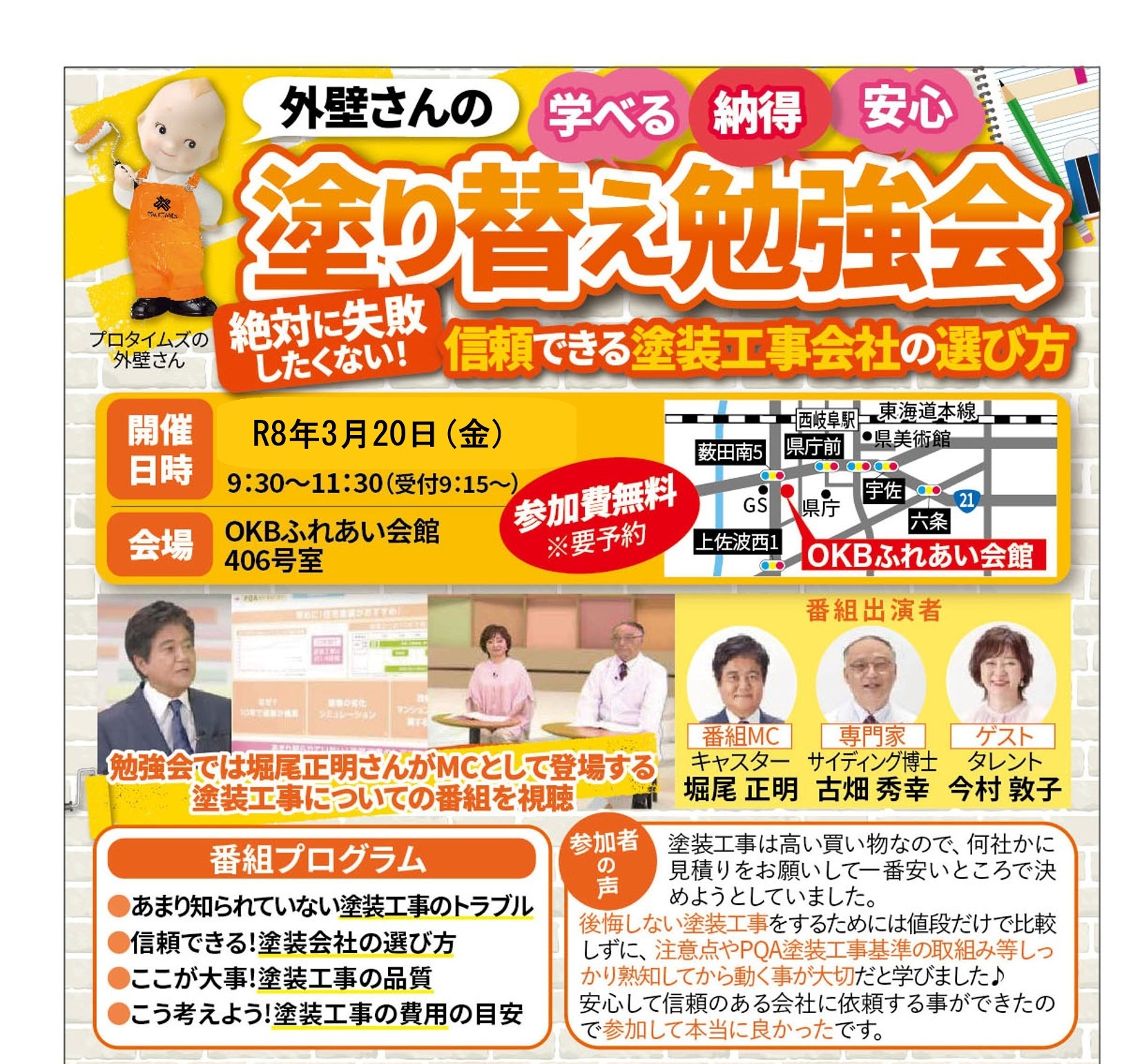 塗装業界では、未だに問題になっている不良施工や、高額請求などのトラブルが発生しています。未然に防ぐためにも、正しい塗装の知識や優良業者の見分け方などを、専門家とゲストが映像で分かりやすくお伝えします。
