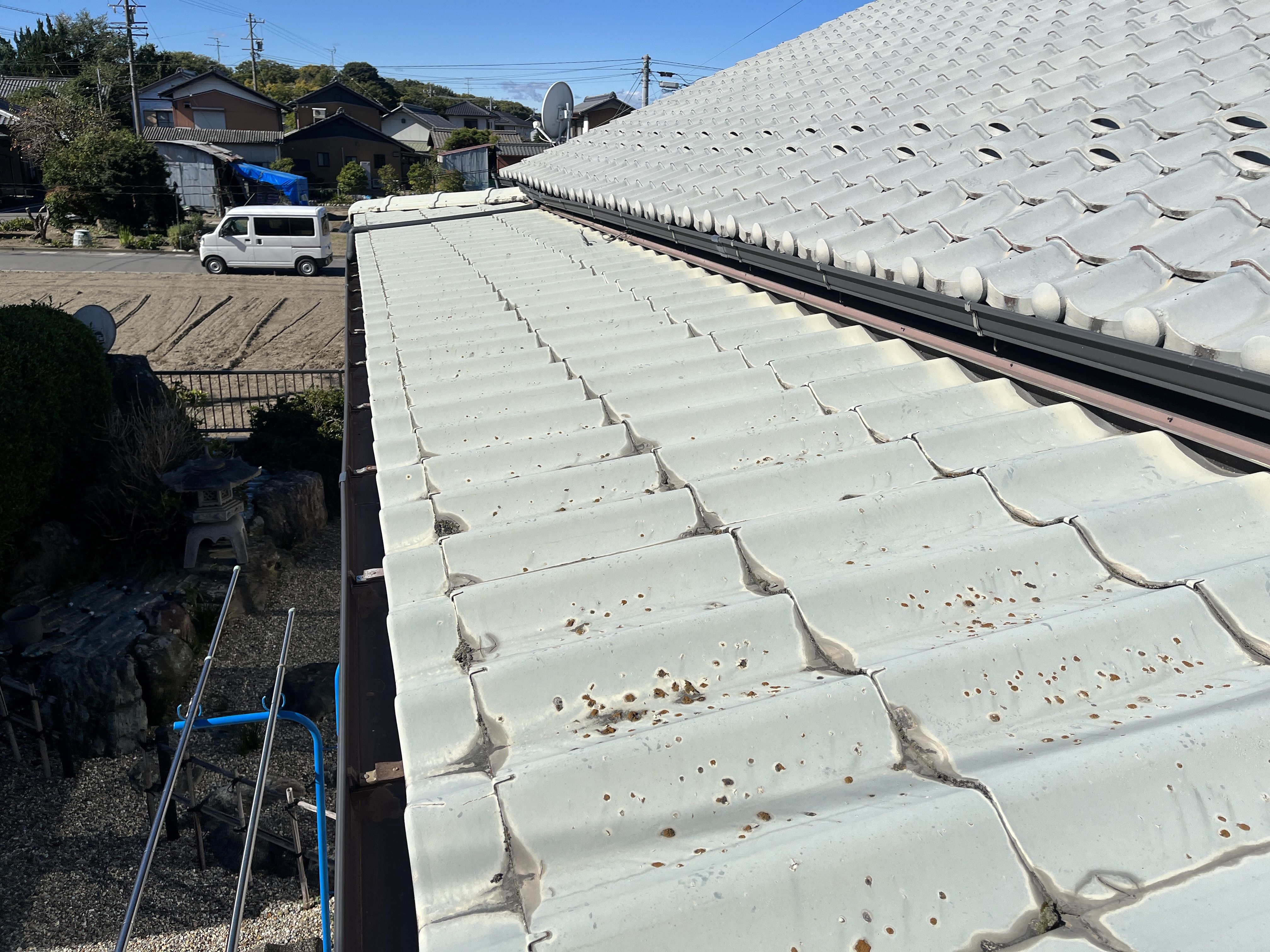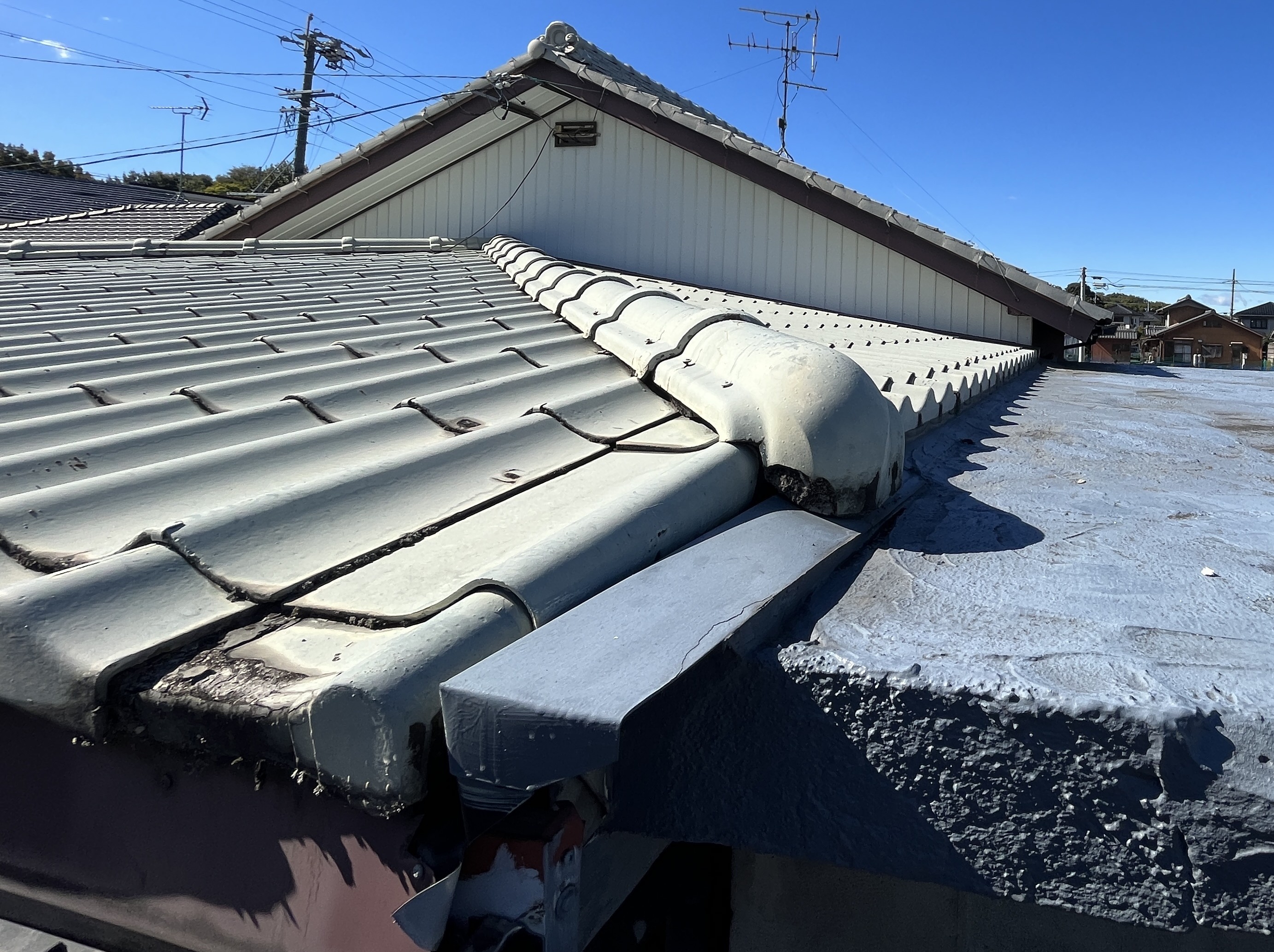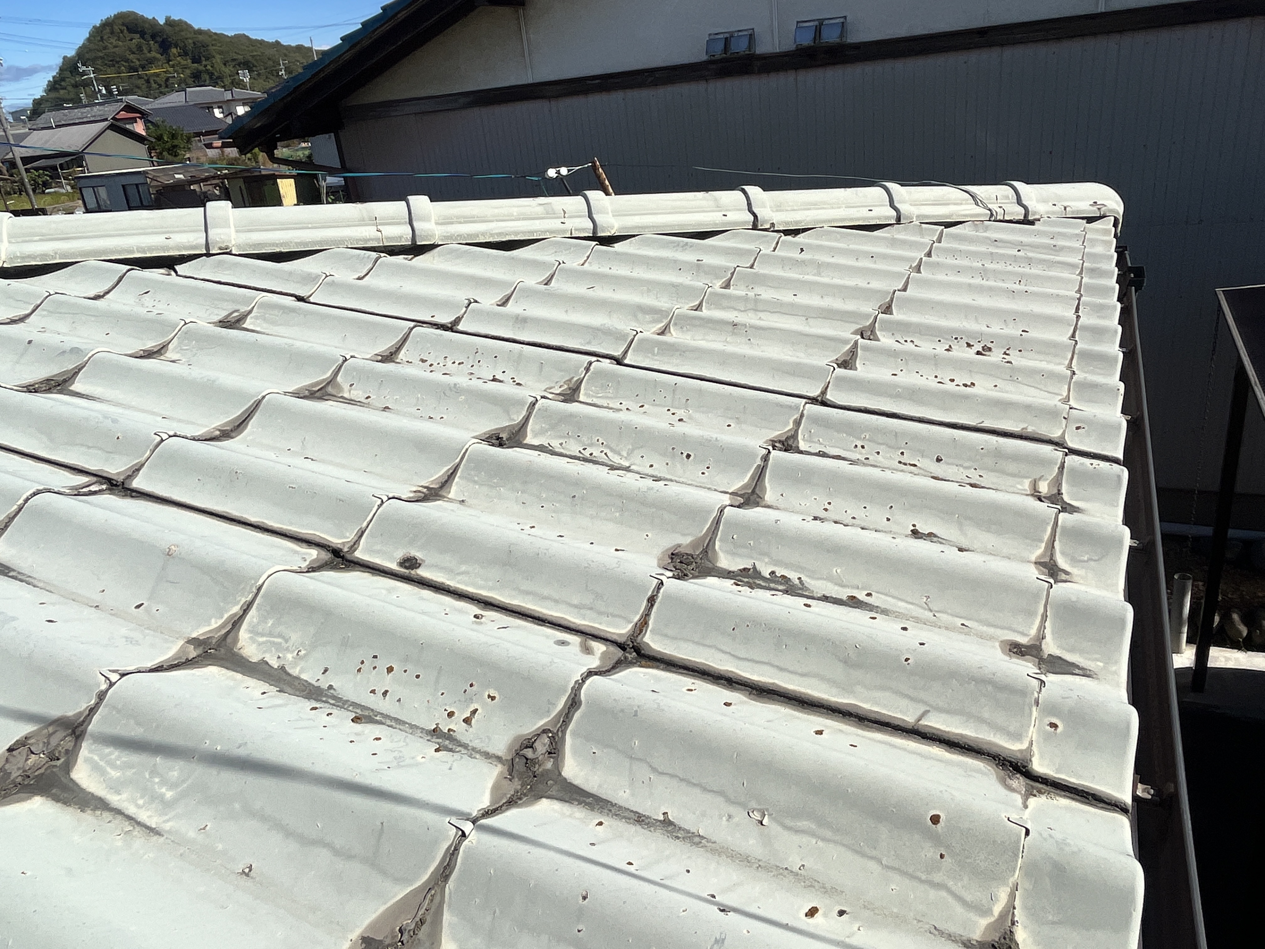 一部の屋根だけモニエル瓦になっており、モニエル瓦だけがひび割れや雨染みが酷い状態でした。