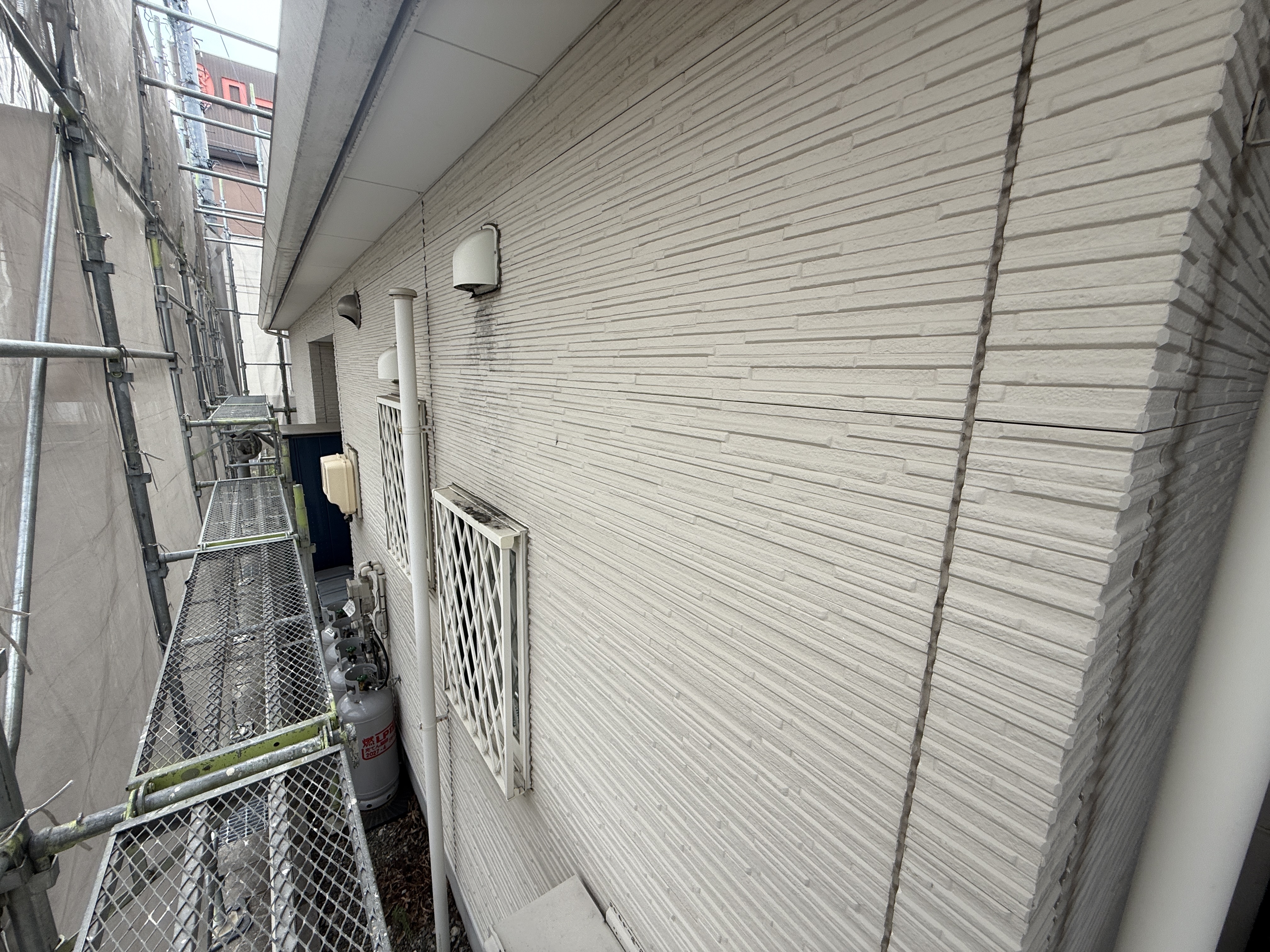 シーリングが外壁の接合部から剥がれています。隙間から内部に水が浸入している可能性がありました。